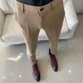 Solid Elastic Waist Dress Pants Calça Masculina Men Slim Business Office Social Ankle Length Trousers